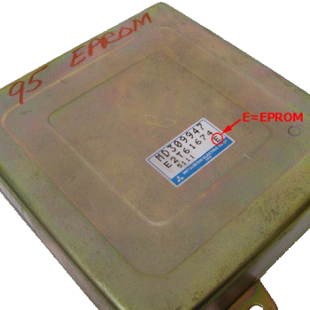 A list of valid 1G turbo ECU part numbers follow. Please reference this chart if you're not sure about the computer you're sending in. We have had a few cases where folks have shipped us a transmission control unit or a non-turbo model instead of a turbo model engine control unit. Also note that the GVR4 ECU (MD165810 or MD165811) is as close to guaranteed to be an EPROM model as you can get.