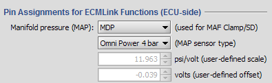 Measured boost is determined from the configured MAP sensor input on the ECU Inputs tab. You MUST configure this input first before the error correction process will work. You do this on the ECU Inputs tab using the fields shown below.