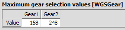 The values shown above are the default gear ratio values provided in ECMLink. These values would select Gear 1 when WGSGearRatio is below 158. Then it would select Gear 2 when WGSGearRtio is between 158 and 248. Then it would select Gear 3 anytime WGSGearRatio is above 248.