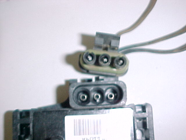 Try to insert the empty Weather Pack connector into the MAP sensor. It won't go! See those little tabs inside the MAP sensor holes? Well, you have to make slits with a razor in the connector you bought to match. Here is what it looks like before: