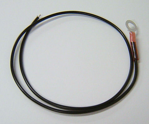 The next step should be obvious. Just solder an extension wire onto the exposed end of the GM MAF ground wire and run it over to a chassis ground point. We do this with a standard ring terminal as illustrated below. Of course, as always, be sure to heatshrink the solder joint. It would also be a good idea to put a zip-tie around the three wires to the GM MAF connector to provide strain relief for the new wire…