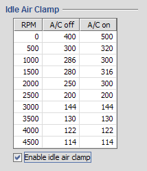 The purpose of this page is to supplement the information in our application help file regarding the Idle Air Clamp tab with a concrete example of how to use this function.