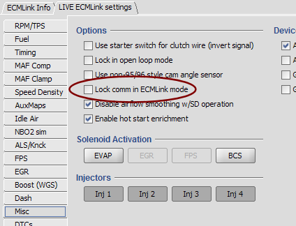 If you plan to take your car into have it emissions tested and they need to connect to your ECU with an OBD2 scanner or if you're trying to connect to the ECU using something other than ECMLink, you will need to clear this check box.